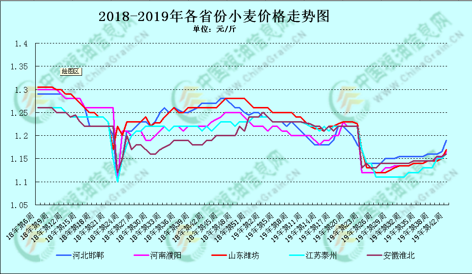進(jìn)入十月以來(lái),小麥價(jià)格“一路高歌”,尤其是國(guó)慶節(jié)以后,制粉企業(yè)頻繁上調(diào)報(bào)價(jià),短短半個(gè)月時(shí)間,普遍上調(diào)了0.03-0.04元/斤(如圖所示),給平淡的小麥?zhǔn)袌?chǎng)打了一支興奮劑。而且伴隨著冬天的到來(lái),天氣的轉(zhuǎn)涼,制粉企業(yè)的小麥需求量也逐漸增長(zhǎng)了起來(lái),隨著面粉,麩皮需求量的增加,小麥的供應(yīng)就顯得十分的吃緊,那么小麥的后市價(jià)格還能再漲嗎?是否能穩(wěn)一穩(wěn)呢?中國(guó)糧油信息網(wǎng)分析師張艷秋認(rèn)為,目前制粉企業(yè)主流收購(gòu)價(jià)格已在1.16-1.2元/斤,國(guó)標(biāo)二等以上,繼續(xù)上漲空間在0.01-0.02元/斤,在政策性小麥底價(jià)不做調(diào)整下,后期將圍繞陳麥到廠成本震蕩運(yùn)行。