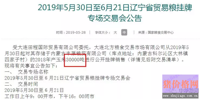 5月30日至6月21日遼寧省3萬噸貿(mào)易糧