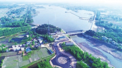 圖為信陽市光山縣龍山湖濕地公園航拍。葉繼斌攝