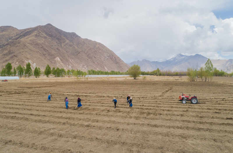 拉薩市曲水縣茶巴朗村的村民在田間作業(yè)(4月24日攝)。