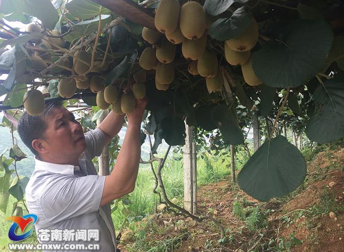 一個個,一串串,一簇簇,惹人喜愛的獼猴桃掛滿棚架,散發(fā)出一陣陣清香!凹t陽品種果型小產(chǎn)量低又難管理,但口味清甜,甜度達17、18;黃金果型大產(chǎn)量低,果呈鴨嘴型,甜度15左右……”常年的摸爬滾打,葉德超儼然成為水果種植土專家,介紹起來流利非常。他指著面前一大簇金艷獼猴桃說,起碼有近30個獼猴桃,共有5斤左右,按每斤8元算,也值40多元!叭绻鞖庹#9月中旬便可全面上市,通過體驗采摘、線上網(wǎng)購、批量訂單、門市銷售,今年的獼猴桃收入15萬元不成問題!比~德超邊修剪枝葉邊介紹。