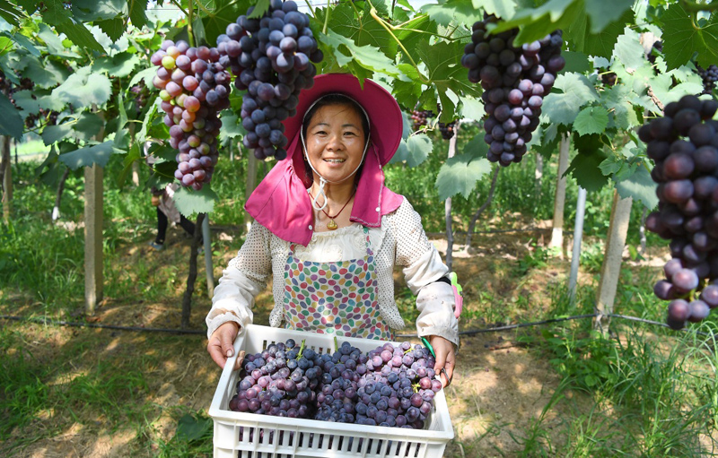 7月18日,在南昌市灣里區(qū)羅亭鎮(zhèn)谷垅葡萄園,農(nóng)民在采摘葡萄。