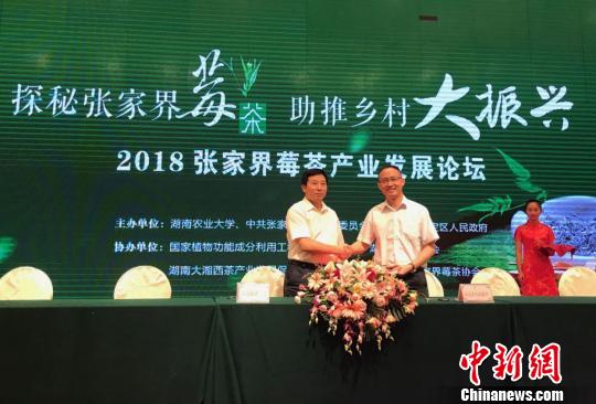 張家界市永定區(qū)人民政府與湖南農(nóng)業(yè)大學(xué)簽訂莓茶產(chǎn)業(yè)發(fā)展(2018-2023年)戰(zhàn)略合作協(xié)議!∴囅肌z