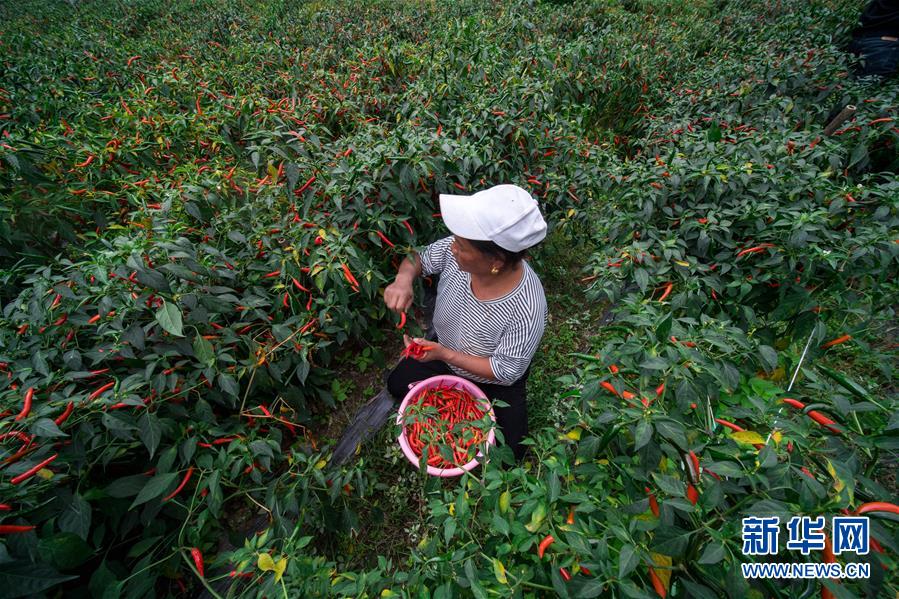 9月29日,在香格里拉市五境鄉(xiāng)澤通村,農(nóng)戶(hù)在田地里采摘朝天椒。