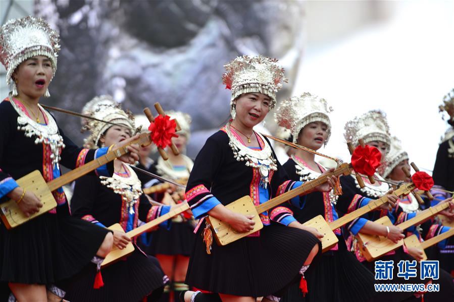 6月17日,演員在廣西龍勝各族自治縣龍脊梯田文化節(jié)上彈唱琵琶歌。新華社發(fā)(潘志祥 攝)