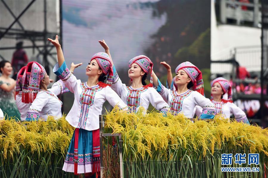 6月17日,演員在廣西龍勝各族自治縣龍脊梯田文化節(jié)上表演節(jié)目。新華社發(fā)(潘志祥 攝)