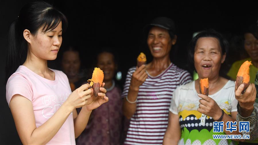 7月23日,欽州市欽南區(qū)犀牛腳鎮(zhèn)西寮村群眾在品嘗紅薯。