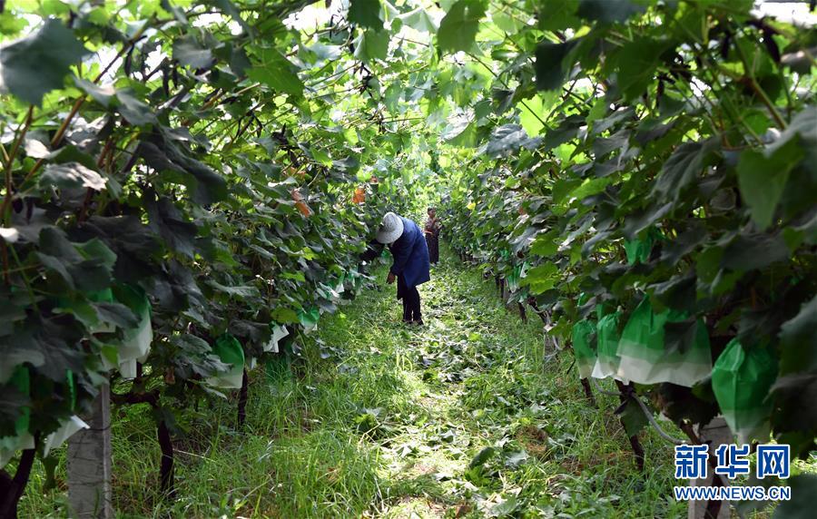 工人在創(chuàng)業(yè)青年謝靜靜的種植基地為葡萄剪枝(7月26日攝)。新華社記者 李嘉南 攝