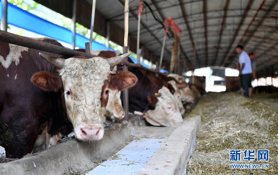 員工在位于孟津縣的肉牛養(yǎng)殖場喂牛(7月26日攝)。新華社記者 李嘉南 攝