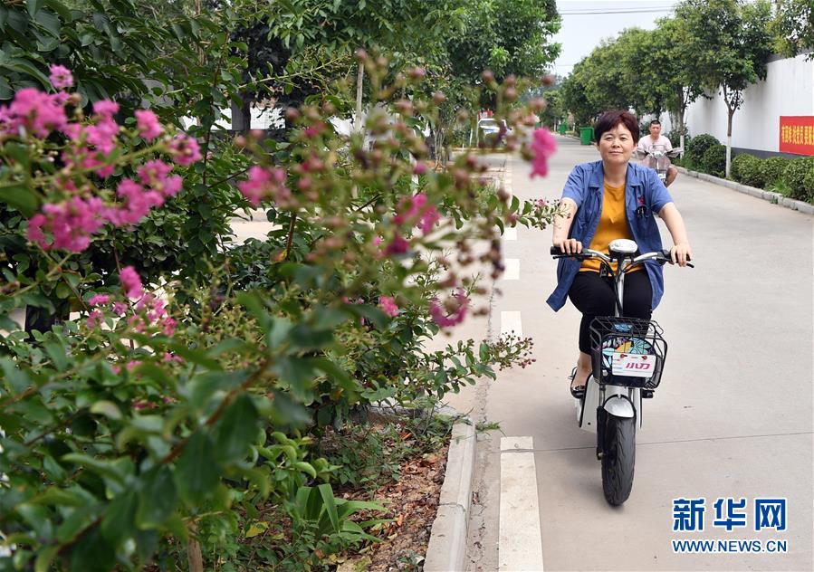 河南省洛陽市孟津縣麻屯鎮(zhèn)盧村的村民在村中街道上騎行(7月25日攝)。新華社記者 李嘉南 攝