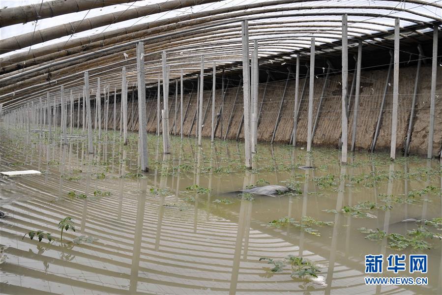 8月11日,在壽光市稻田鎮(zhèn)東里村,蔬菜大棚進(jìn)水。