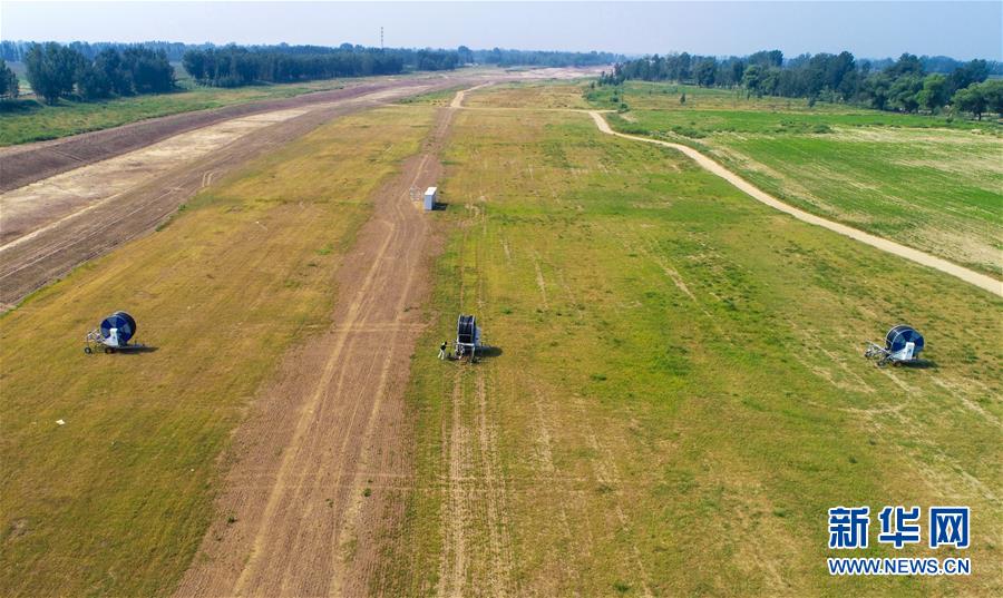 近年來,河北省安平縣堅持“綠水青山就是金山銀山”的發(fā)展理念,投資1億元實施滹沱河生態(tài)治理項目,用于生態(tài)修復、河道固沙工程建設(shè)。河北省安平縣境內(nèi)的滹沱河河道常年無水干涸,河道內(nèi)沙質(zhì)土壤覆蓋,如遇大風天氣,風沙嚴重破壞了生態(tài)環(huán)境,影響周邊群眾的生產(chǎn)和生活。該河道治理項目通過種植各類牧草30余種,派專人定期播種、養(yǎng)護、收割,達到保護河道和生態(tài)環(huán)境的效果,成為一個造福于民的民心工程。新華社記者李曉果攝