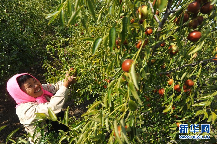 10月9日,河北省黃驊市滕莊子鄉(xiāng)孔店村棗農(nóng)在收獲冬棗。