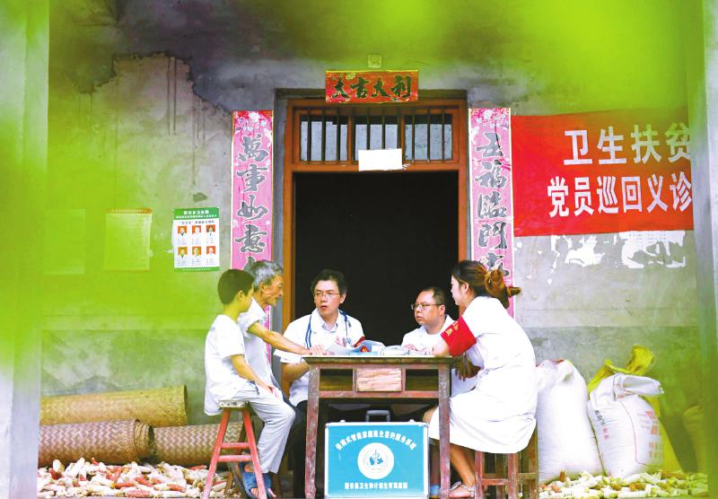 8月5日,蓬安縣群樂鄉(xiāng)土橋子村章順學(左二)家,蓬安縣醫(yī)院和群樂鄉(xiāng)衛(wèi)生院的醫(yī)務人員在進行跟蹤診斷。目前,蓬安縣衛(wèi)生系統(tǒng)累計為5萬多名貧困人口建立健康檔案,實行動態(tài)監(jiān)測管理,做到了入戶、上門、見人。