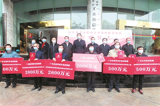 2月7日,自治區(qū)新冠肺炎疫情防控工作領(lǐng)導(dǎo)小組指揮部舉行捐贈(zèng)活動(dòng),24家企業(yè)現(xiàn)場(chǎng)捐贈(zèng)款物價(jià)值超過(guò)1億元,用于疫情防控工作。 本報(bào)記者 何學(xué)俏/攝