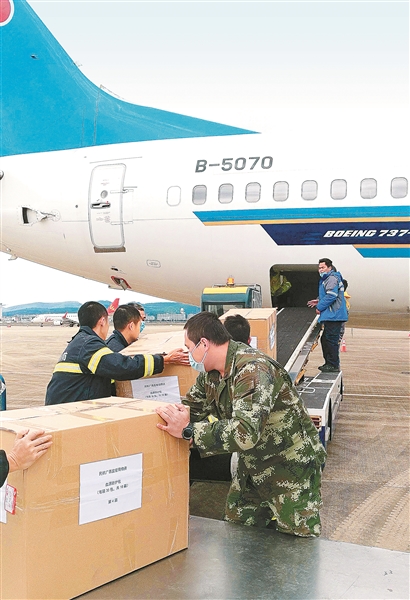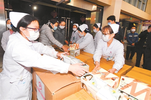 一批批愛(ài)心企業(yè)捐贈(zèng)的醫(yī)療物資陸續(xù)裝車運(yùn)往湖北疫情防控一線。何平江/攝