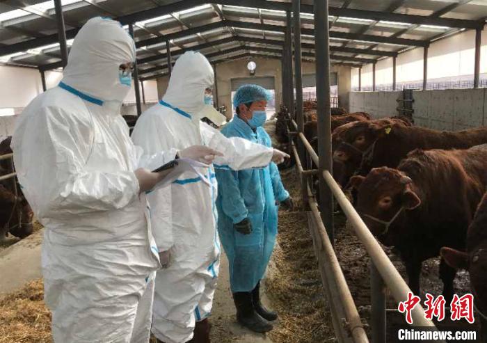 3月初,甘肅一企業(yè)的28頭西門塔爾牛經(jīng)蘭州海關(guān)所屬平?jīng)龊jP(guān)檢疫合格后,順利供應(yīng)澳門市場。圖為蘭州海關(guān)工作人員開展現(xiàn)場查驗(yàn)檢疫。蘭州海關(guān)供圖