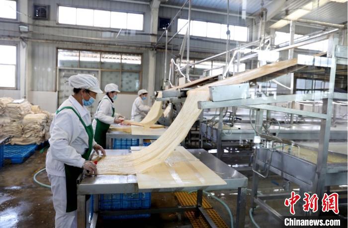 位于伏家鎮(zhèn)的甘肅兆豐農(nóng)業(yè)開發(fā)責(zé)任有限公司,即是一家以豆制品精深加工為主的本土企業(yè)。4月下旬,走進該企業(yè)原料儲備庫里,濃濃豆香撲面而來,一顆顆色澤光亮、飽滿圓潤的黃豆是整個產(chǎn)業(yè)鏈的“主角”。該企業(yè)負責(zé)人冉奎介紹說,目前生產(chǎn)有腐竹、油豆皮、豆干、豆包等,“黃豆年需求達到2000噸,從原味豆?jié){生產(chǎn)、特色產(chǎn)品加工、到廢料豆渣的利用,加工鏈條較為完善”。