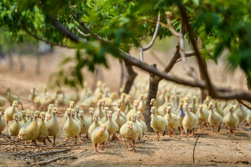 5月3日拍攝的邯鄲市峰峰礦區(qū)彭城鎮(zhèn)藺家莊村林下養(yǎng)鵝基地內(nèi)的鵝。