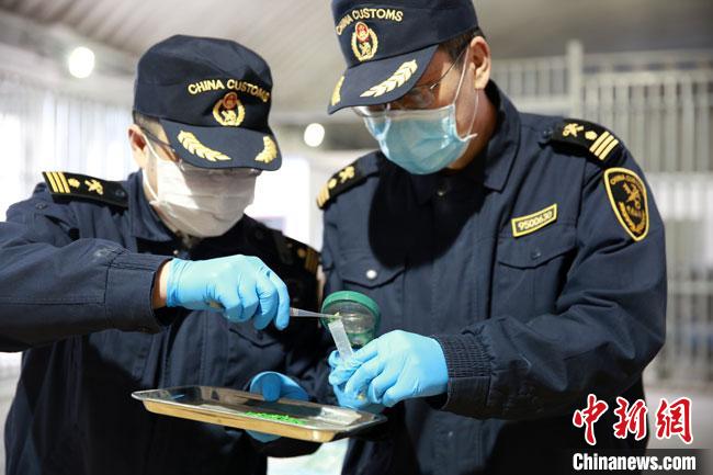 圖為蘭州海關(guān)工作人員監(jiān)管入境種子!√m州海關(guān)供圖 攝