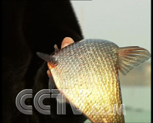 周德順:“你看這魚多新鮮,它的表面光滑,肚子也很小,它所有的線條很清晰,F(xiàn)在魚活的時(shí)候細(xì)菌就侵蝕不了它,因?yàn)轸~表面有魚涎,這種魚涎能夠保證細(xì)菌不侵蝕它。”