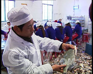 羅輝松:“他開始打電話說(shuō)給我聽的時(shí)候,我不是很感興趣,我總覺得我的魚不愁賣,沒(méi)有必要加工,他一比喻那個(gè)產(chǎn)值、價(jià)值,高出平常的一倍我就非常有興趣 。 ”