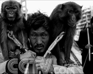 關于耍猴人的生活中國國家地理雜志的記者馬宏杰曾經(jīng)三次同吃同住同行跟蹤拍攝。他告訴我們,扒火車是耍猴人去全國各地最省錢的交通方式,每個耍猴人都有幾十次扒火車的經(jīng)歷,因為知道不合法,怕被鐵路公安發(fā)現(xiàn),他們長時間不敢站立,往往一蹲就是幾天幾夜。由于長年在鐵路上這么跳上跳下,很多耍猴人最后都出了事。