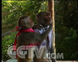 記者:“這位就是匡氏三兄弟的老三匡三傲,匡氏三兄弟在全國已經(jīng)是非常非常的有名了,國內(nèi)外十幾家電視臺對他們的猴藝表演都做過報道,那很多片子都賣到了海外。”