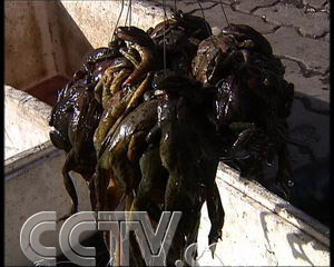 王彥臣:“誰都會抓,繁殖不起來,大小都可以抓, 都吃了,抓的不讓它生長,它就抓出來了,產(chǎn)油率就低,小的就沒有油,賣不上價(jià)錢。”
