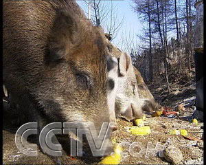 張海濱:“要增加運(yùn)動(dòng)量,它吃好的時(shí)候轉(zhuǎn)一轉(zhuǎn),溜達(dá)溜達(dá),野豬的習(xí)性,山頂上上面躥,下面跳的,大的追小,小的追大的,也是一個(gè)玩耍,整這個(gè)玉米就是吸引它,就是給它最好的東西,最好的獎(jiǎng)賞。苞米棒子一來(lái),它就跑回來(lái)了,和人還產(chǎn)生一定感情。”