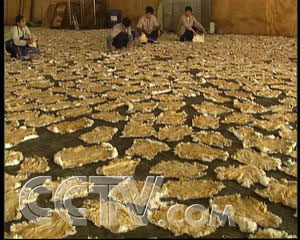 裘皮制品有限公司采購(gòu)經(jīng)理 戴正權(quán):“上面它一般的皮子殺下來之后,上面都要撒鹽的。”