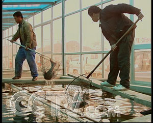 北京市密云縣溪翁莊鎮(zhèn)村民 劉振祥:“我這個(gè)池子能裝2000斤魚(yú),我外面還有個(gè)池子,凈化完了撈到這來(lái)。”