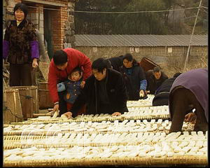 2007年初,離過年還有一個多月,當?shù)氐拇迕駛兙烷_始忙著做年糕了。按照當?shù)氐娘L俗,每家每戶過年都做年糕,雞鴨魚肉也一樣都不 能少。這些年貨都會在過年的時候當禮品送出去。做年糕的地方就在自己家門口,看著人來人往做年糕的村民,傅功明突然有了一個靈感,他立刻打電話到印刷廠訂 了300個過年禮盒。