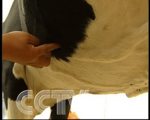 安達(dá)市先源鄉(xiāng)農(nóng)牧中心主任 高富友: “最重要的我們是看一頭奶牛的泌乳系統(tǒng),產(chǎn)奶量高的奶牛一般是乳井大而且深,入口深,再一個是乳動靜脈彎粗長。”