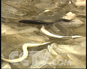 鰻魚養(yǎng)殖場負(fù)責(zé)人 孫偉明:“這種大的是我們國內(nèi)客戶,特別香港的客戶需要更大一些。”