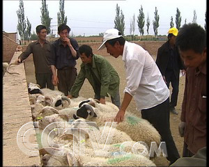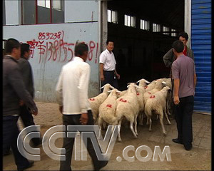 這樣的價格博弈戰(zhàn)每天都在延續(xù),記者采訪期間灘羊的收購價一公斤22元,是近年來最高的價格。談好價后經(jīng)銷商就把羊拉到旁邊的屠宰場宰殺,然后再銷往各國各地,單單這個市場一天平均要出售500多只灘羊,僅2006年交易額就高達5000多萬元。