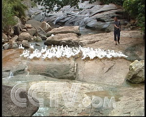 李國賢:“這個(gè)鴨子不好抓,天天在山澗里跑,肌肉非常發(fā)達(dá),會(huì)飛。”