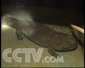 2006年,王國興的山洞里已經(jīng)養(yǎng)殖了2萬多尾娃娃魚,成了遠近聞名的娃娃魚繁育養(yǎng)殖基地。在洪水中,被他逮住的這條種娃娃魚,已經(jīng)長到130多斤。盡管為它丟了一截手指,王國興依然很欣慰。