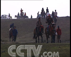 霎時(shí)間,馬市成了最熱鬧的場(chǎng)所,草原鄉(xiāng)的馬匹交易量陡增。一個(gè)月內(nèi)草原上猛然出現(xiàn)了近千匹馬。幸福村一半以上人從事起了牽馬載客服務(wù)。