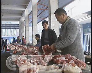 何少文:“我們那個(gè)屠夫,每一天早上是4:30,有時(shí)候4點(diǎn)到我這里來(lái)殺豬,那最多的時(shí)候七八頭,價(jià)格在我這里搞出去是8元錢(qián)一斤。”