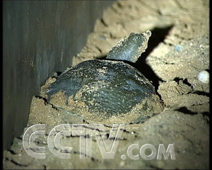 姜龍小:“這是蛋,這個痕跡就是甲魚下完蛋留下的。”