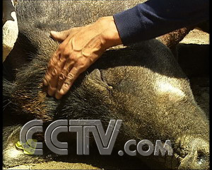 擺脫了豬圈的束縛,野豬馬上恢復(fù)了它善于奔跑的野性,盡管一路不斷遭到人們的圍追堵截,野豬還是從村里跑到地里最后跑到了山里。陳興友進(jìn)行了長(zhǎng)達(dá)5公里的馬拉松式的追擊,直到野豬筋疲力竭的時(shí)候,才在其他村民的幫助下將它制服。