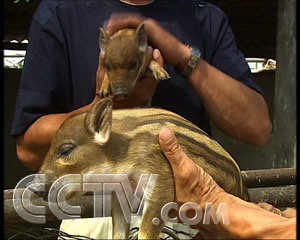 養(yǎng)陳興友野豬的村民都覺得很合算。到了2006年,豬肉價(jià)格大幅度下跌.家豬仔和野豬仔的價(jià)錢也跟著一降再降,好多村民開始擔(dān)心, 陳興友會(huì)不會(huì)變卦,壓低豬仔的回收價(jià)錢。 知道村民的議論后,陳興有專門通過村里的大喇叭鄭重宣布,他仍然以每只200元的價(jià)格回收村民的野豬仔。