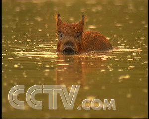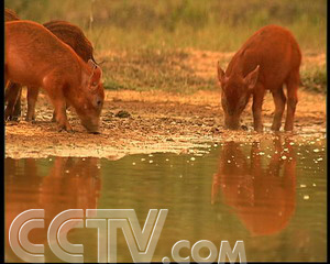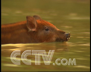 唐文榮:“野豬喜歡在泥漿,一些淺灘,水里面玩耍,游游泳,尤其在熱天。”
