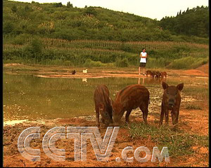 和大野豬相比,小野豬就要幸福得多。在養(yǎng)殖場旁邊的山坳里,小野豬正在享受著夏日的清涼。