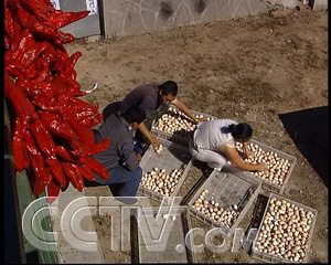 為了讓買主沒得挑,經(jīng)銷商彭立雙是那只雞跑得歡,就專揀那只抓。經(jīng)歷了大半天的的工夫,他已經(jīng)是累得精疲力竭?善綍r在山上吃蟲 子,刨草籽打慣了游擊的山林雞卻個個勁頭十足。滿山地奔跑和他玩起了捉迷藏。但即使再累,彭立雙的要求還是一點也沒降低,每只雞仍舊是精挑細(xì)選,因為他的 心里還裝著另一本帳。
