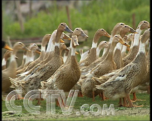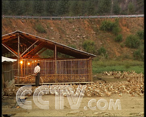 每天早上6點鐘,浙江省淳安的金志康都準(zhǔn)時把他的鴨子放出來,這里是淳安縣境內(nèi)幾座山之間的一個湖灣,金志康在里養(yǎng)了2萬多只蛋鴨。