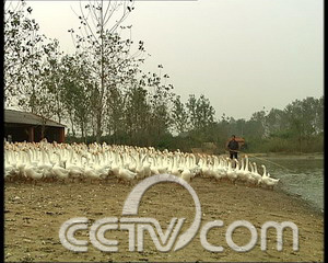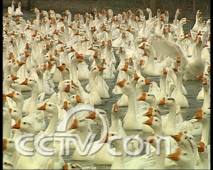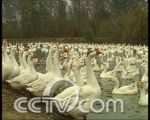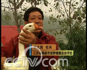江蘇省高郵市送橋鎮(zhèn)鵝業(yè)合作社社員 邵天祥:“這個鵝不像小鵝,不像種鵝,它養(yǎng)的時間長,比較兇。”