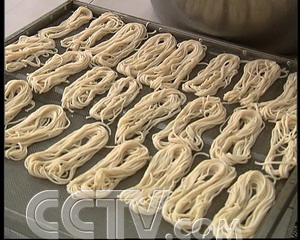 他請(qǐng)來當(dāng)?shù)佤~面作得最好的師傅,用魚肉和面粉按7:3的比例拌在一起作魚面。經(jīng)過上百次的試驗(yàn),2005年底,一種和傳統(tǒng)魚面口味一樣的干制魚面研制成功。
